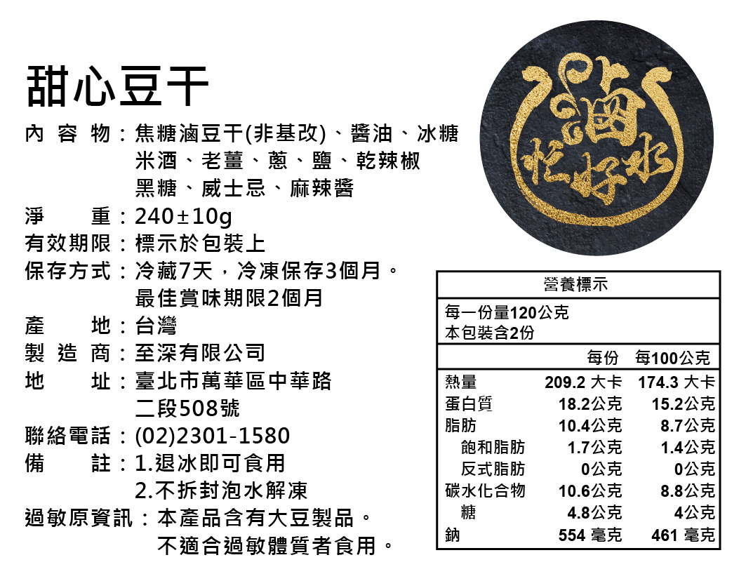 成份:非基改豆干、醬油、冰糖、米酒、老薑、蔥、鹽、乾辣椒、黑糖、威士忌、麻辣醬、雞心辣椒(辣味)